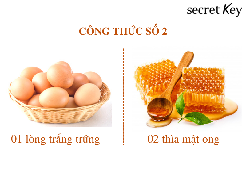 Công thức thứ hai chính là bộ đôi lòng trắng trứng gà và mật ong. Bản thân mỗi nguyên liệu này đều rất tốt cho da, bạn có thể sử dụng riêng hai nguyên liệu này để làm mặt nạ, nhưng nếu kết hợp lại, lòng trắng trứng sẽ trong khi đó mật ong lại hỗ trợ tẩy tế bào chết nhẹ nhàng, giúp tăng hiệu quả trắng và sạch da.