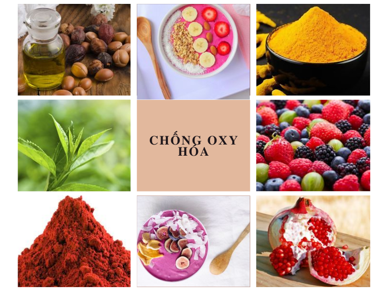 Một số thành phần nổi bất với tác dụng chống oxy hóa tính tới nay: