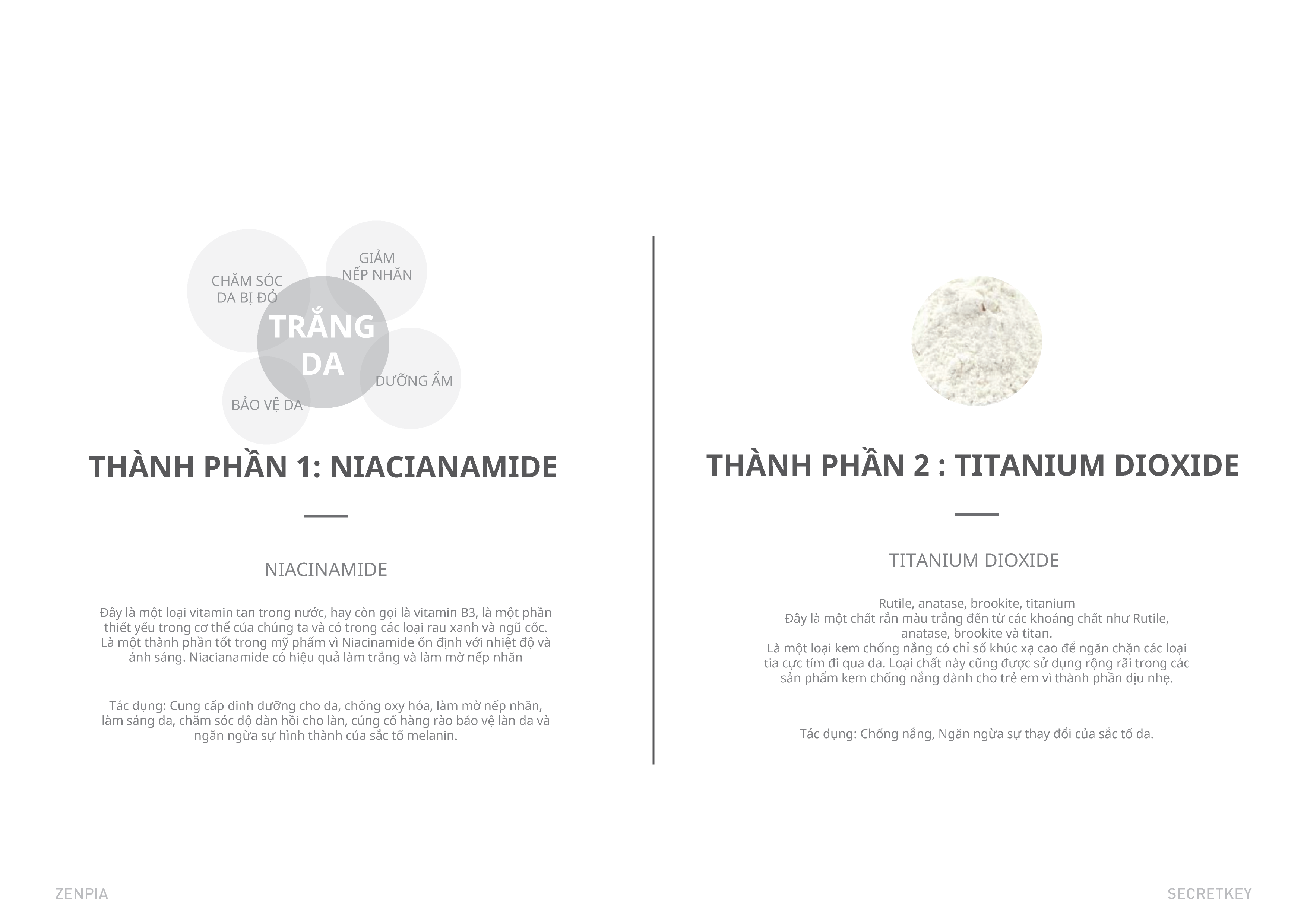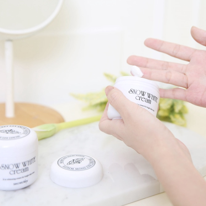 Kem dưỡng trắng da Hàn Quốc - Secret Key Snow White Cream có thành phần chủ chốt là Niacianamide (Vitamin B3), là một loại Vitamin có trong thực phẩm, được sử dụng trong chế độ ăn uống và dược phẩm. Trong mỹ phẩm, nó được sử dụng để làm sáng da và dưỡng ẩm vô cùng hiệu quả vì có khả năng ức chế Tyrosinase enzyme từ đó giảm sự hình thành các sắc tố melanin gây sỉn màu, thâm nám giúp da cải thiện tông da trắng sáng hơn.